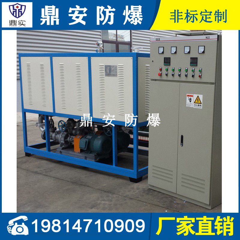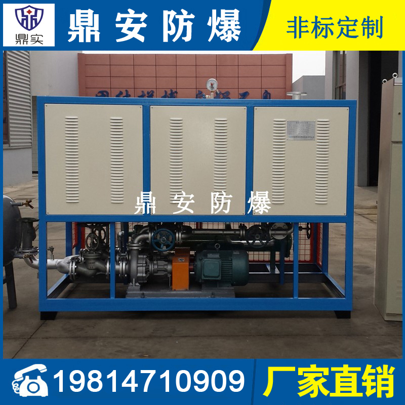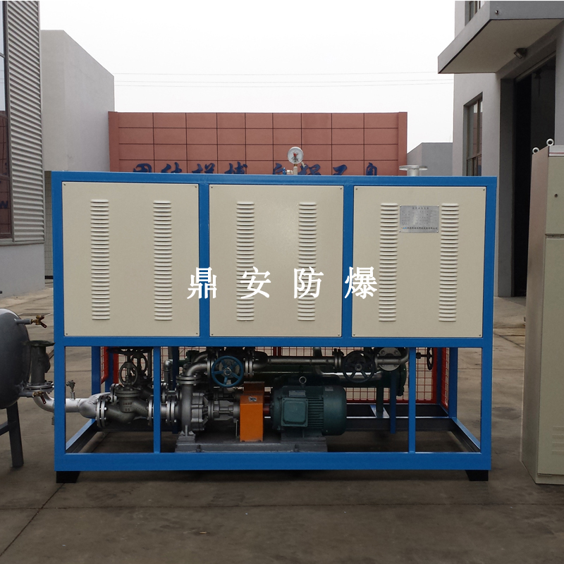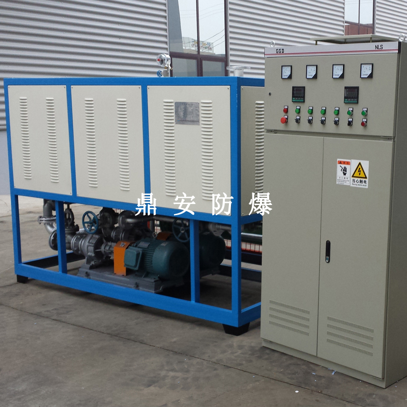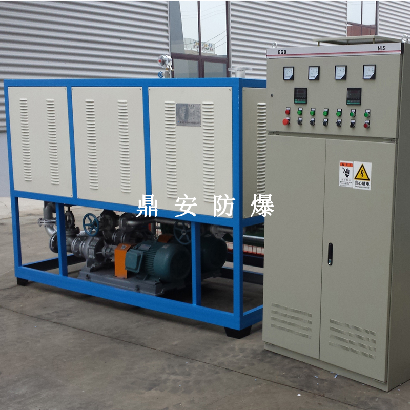 導(dǎo)熱油加熱機(jī)組(又稱電加熱導(dǎo)熱油爐)由防爆電加熱器、有機(jī)熱載體爐、換熱器(可配置)、控制柜,熱油泵、膨脹槽等組成一個(gè)整體的系統(tǒng),用戶只需要接入電源、介質(zhì)的進(jìn)出口管道法蘭及一些電氣接口即可使用。具有完備的運(yùn)行控制和安全監(jiān)測(cè)裝置,能實(shí)行自動(dòng)化控制。能在較低的運(yùn)行壓力下獲得較高的工作溫度。