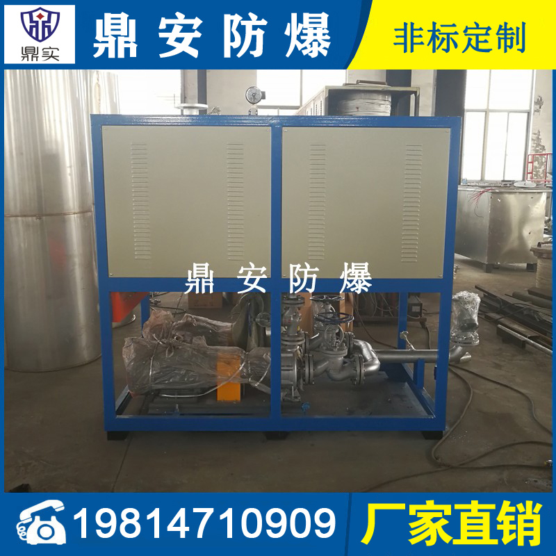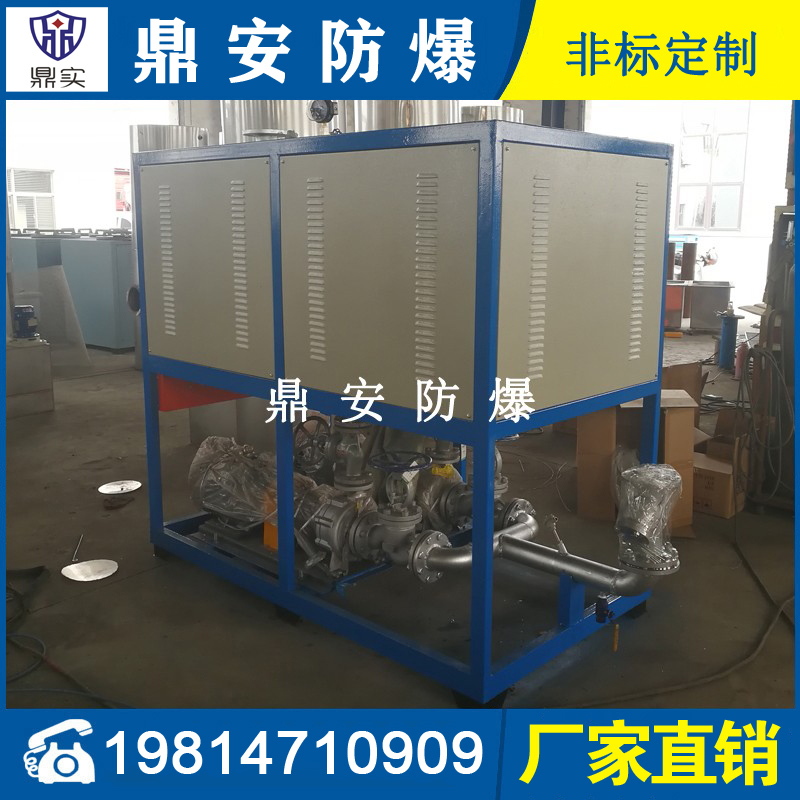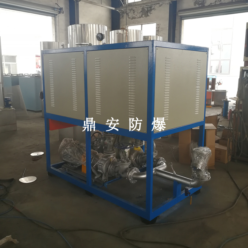 導(dǎo)熱油加熱機(jī)組(又稱電加熱導(dǎo)熱油爐)由防爆電加熱器、有機(jī)熱載體爐、換熱器(可配置)、控制柜,熱油泵、膨脹槽等組成一個(gè)整體的系統(tǒng),用戶只需要接入電源、介質(zhì)的進(jìn)出口管道法蘭及一些電氣接口即可使用。具有完備的運(yùn)行控制和安全監(jiān)測(cè)裝置,能實(shí)行自動(dòng)化控制。能在較低的運(yùn)行壓力下獲得較高的工作溫度。
