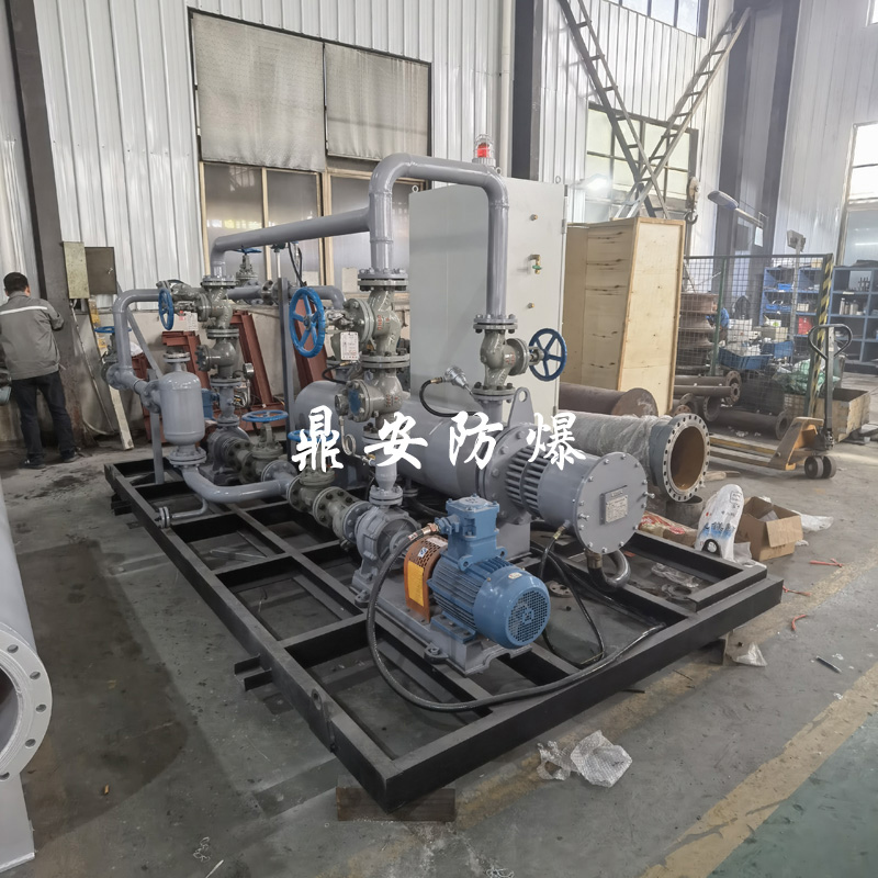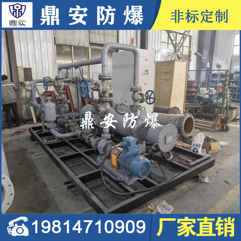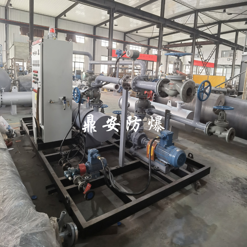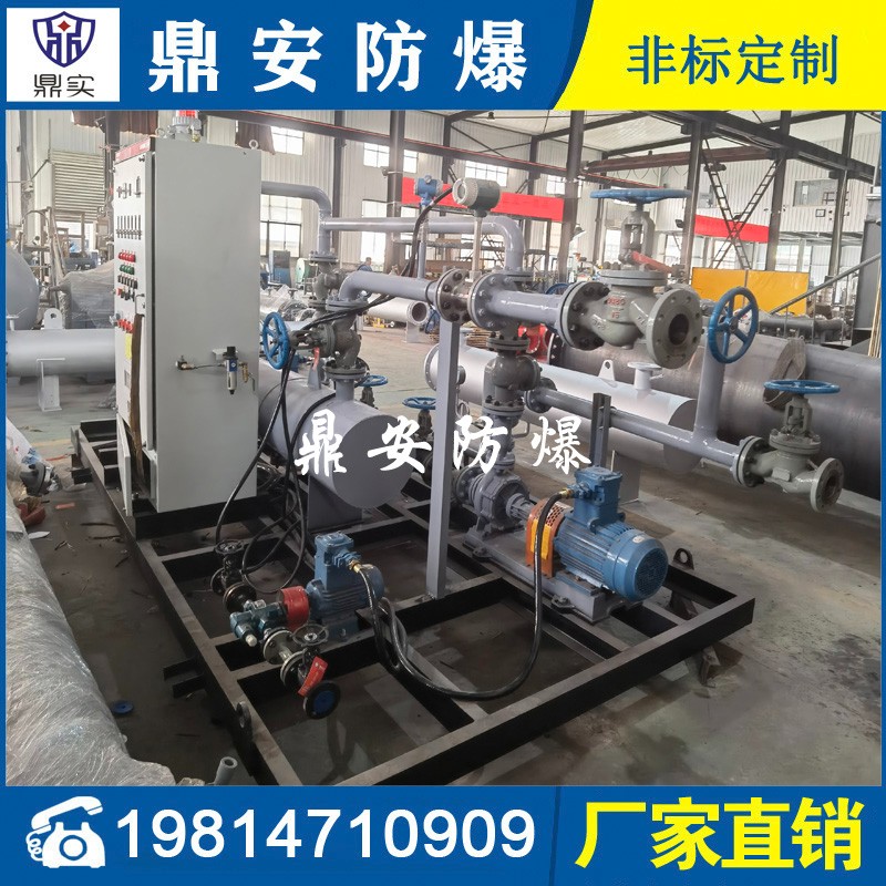 導(dǎo)熱油加熱機(jī)組(又稱電加熱導(dǎo)熱油爐)由防爆電加熱器、有機(jī)熱載體爐、換熱器(可配置)、控制柜,熱油泵、膨脹槽等組成一個(gè)整體的系統(tǒng),用戶只需要接入電源、介質(zhì)的進(jìn)出口管道法蘭及一些電氣接口即可使用。具有完備的運(yùn)行控制和安全監(jiān)測(cè)裝置,能實(shí)行自動(dòng)化控制。能在較低的運(yùn)行壓力下獲得較高的工作溫度。
